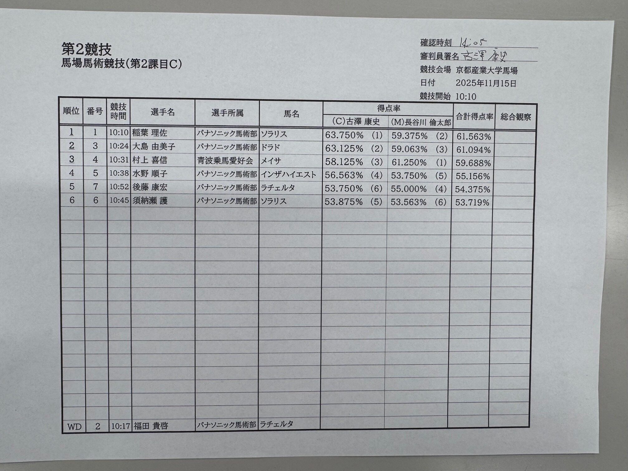 会場と素晴らしい馬匹をご提供くださいました、京都産業大学馬術部の小林部長様、水野監督様、古澤様はじめ学生の皆さまには、前日の設営から終日のサポートを頂き、本当にありがとうございました。心から感謝申し上げます。
